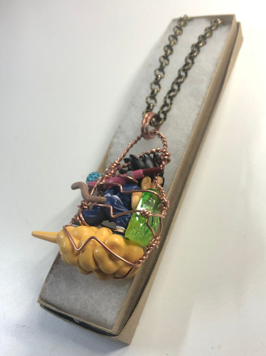 Son Goku on Nimbus Dragon Ball with Green Apple Quartz Copper Necklace