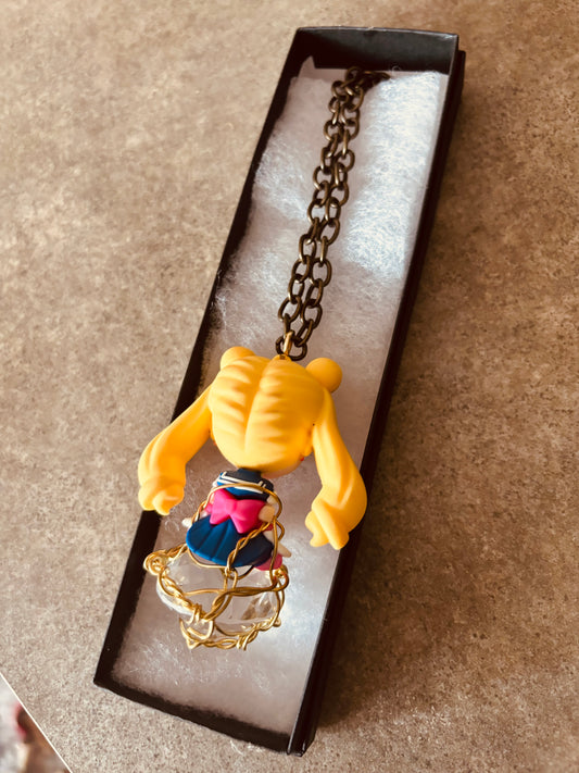 Sailor Moon Brass Faceted Diamond Glass Pendant Necklace