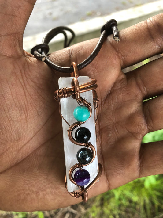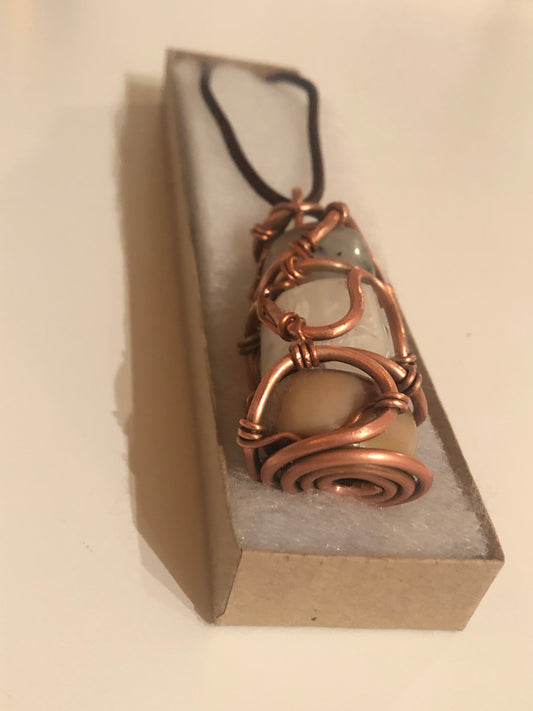 Rutilated quartz, Selenite & Tigers Eye Totem Crystal Amulet