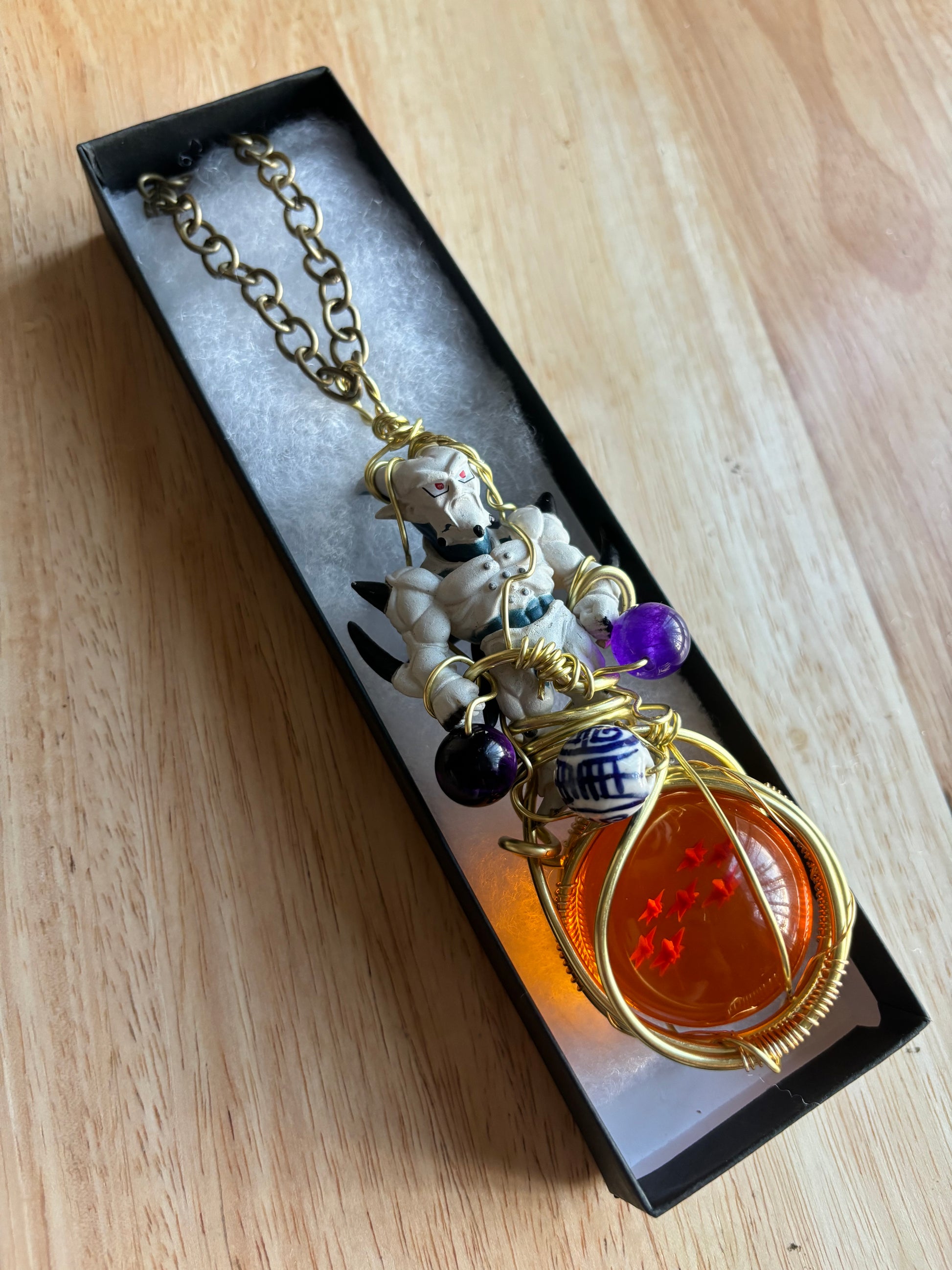 Invoke the power of Shenron with this striking Good Luck Blessings Charm Necklace. This unique piece features a vibrant resin Dragon Ball encased in a sleek brass setting, symbolizing fortune, wisdom, and the fulfillment of wishes. Inspired by the legendary dragon, Shenron, this charm radiates positive energy and protection, making it more than just an accessory—it’s a talisman for those seeking abundance and blessings. Meticulously handcrafted with attention to detail, this necklace is a bold statement of both style and spiritual intention, perfect for those embracing holistic artistry.